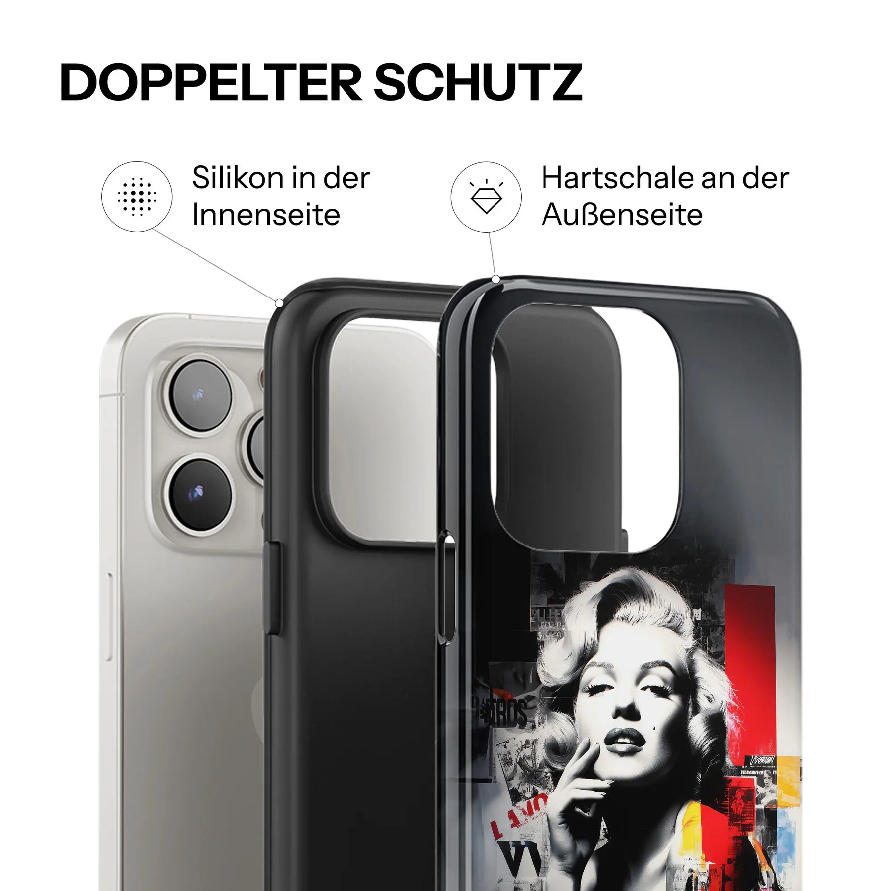 Each case combines a precisely crafted silicone mold on the inside with a glossy hard shell on the outside. The result: a case that fits your smartphone perfectly, protects it reliably, and impresses with a stylish design.