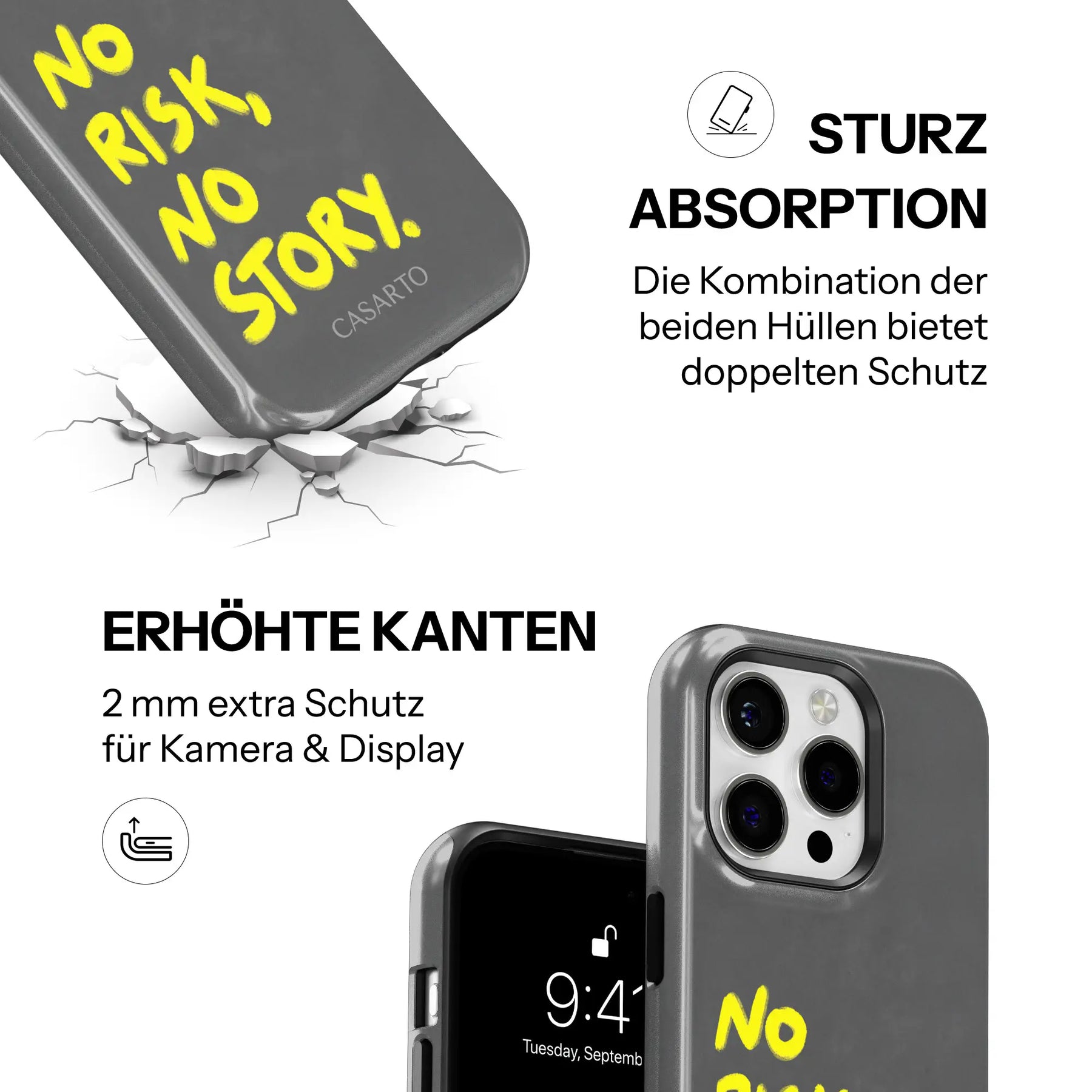 Nuestras Casarto Cases convencen no solo por sus diseños llamativos, sino también por su durabilidad y funcionalidad. La combinación de silicona amortiguadora de impactos y una carcasa dura y resistente protege tu smartphone de forma fiable – día tras día. La impresión de alta calidad permanece brillante, incluso con un uso intensivo.