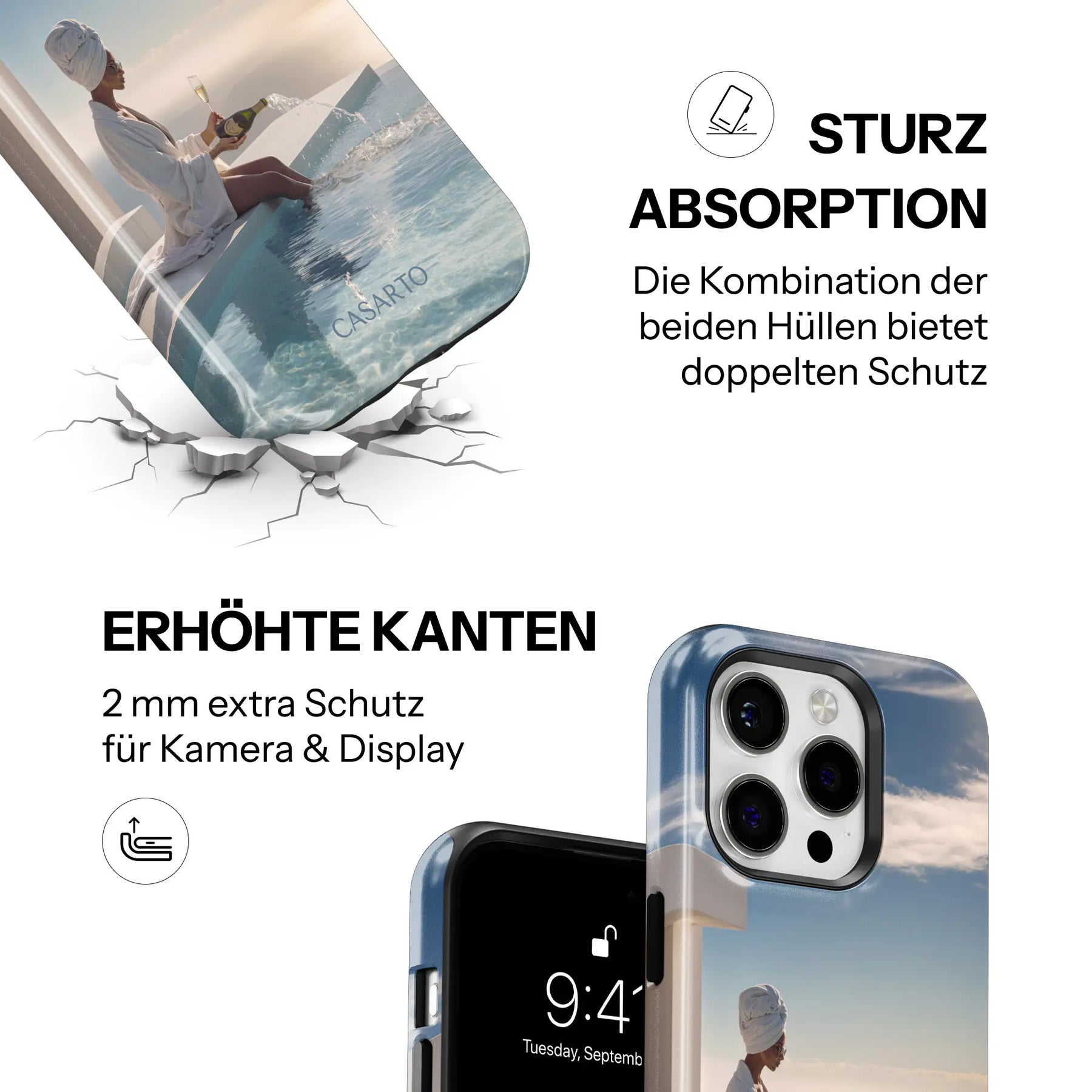 Nuestras Casarto Cases convencen no solo por sus diseños llamativos, sino también por su durabilidad y funcionalidad. La combinación de silicona amortiguadora de impactos y una carcasa dura y resistente protege tu smartphone de forma fiable – día tras día. La impresión de alta calidad permanece brillante, incluso con un uso intensivo.