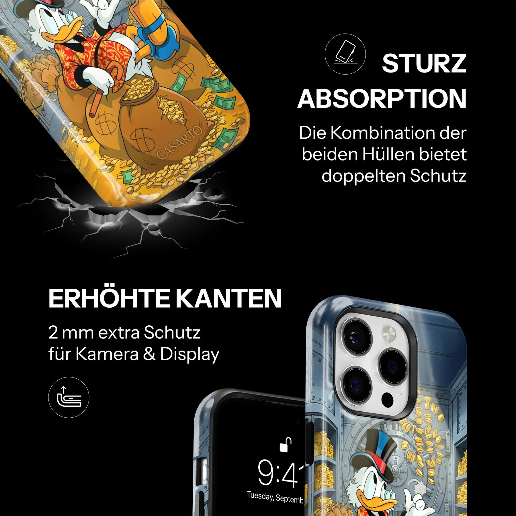 Unsere Casarto Cases überzeugen nicht nur durch starke Designs, sondern auch durch Langlebigkeit und Funktion. Die Kombination aus stoßabsorbierendem Silikon und robuster Hartschale schützt dein Smartphone zuverlässig – Tag für Tag. Der hochwertige Druck bleibt brillant, selbst bei intensiver Nutzung.