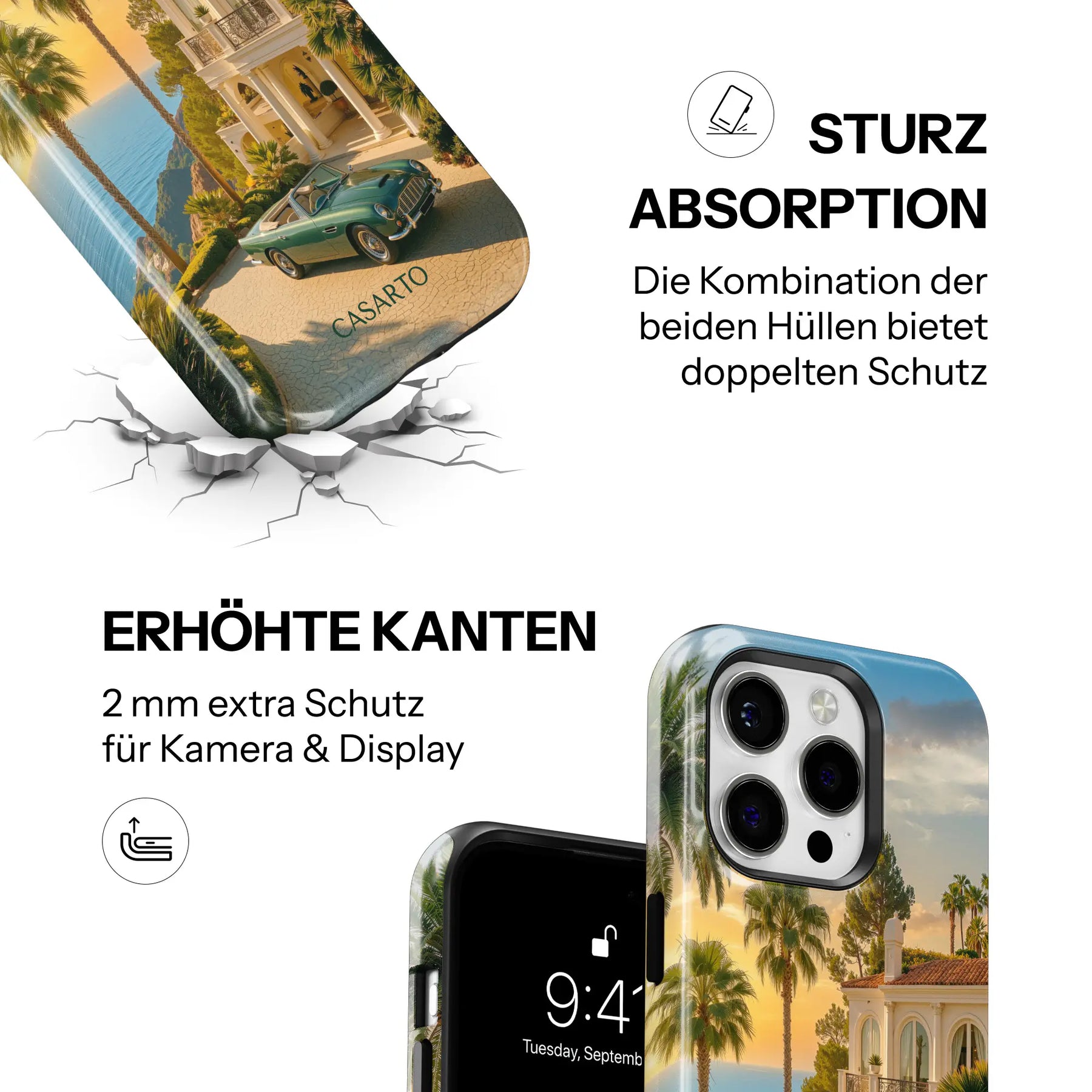 Unsere Casarto Cases überzeugen nicht nur durch starke Designs, sondern auch durch Langlebigkeit und Funktion. Die Kombination aus stoßabsorbierendem Silikon und robuster Hartschale schützt dein Smartphone zuverlässig – Tag für Tag. Der hochwertige Druck bleibt brillant, selbst bei intensiver Nutzung.