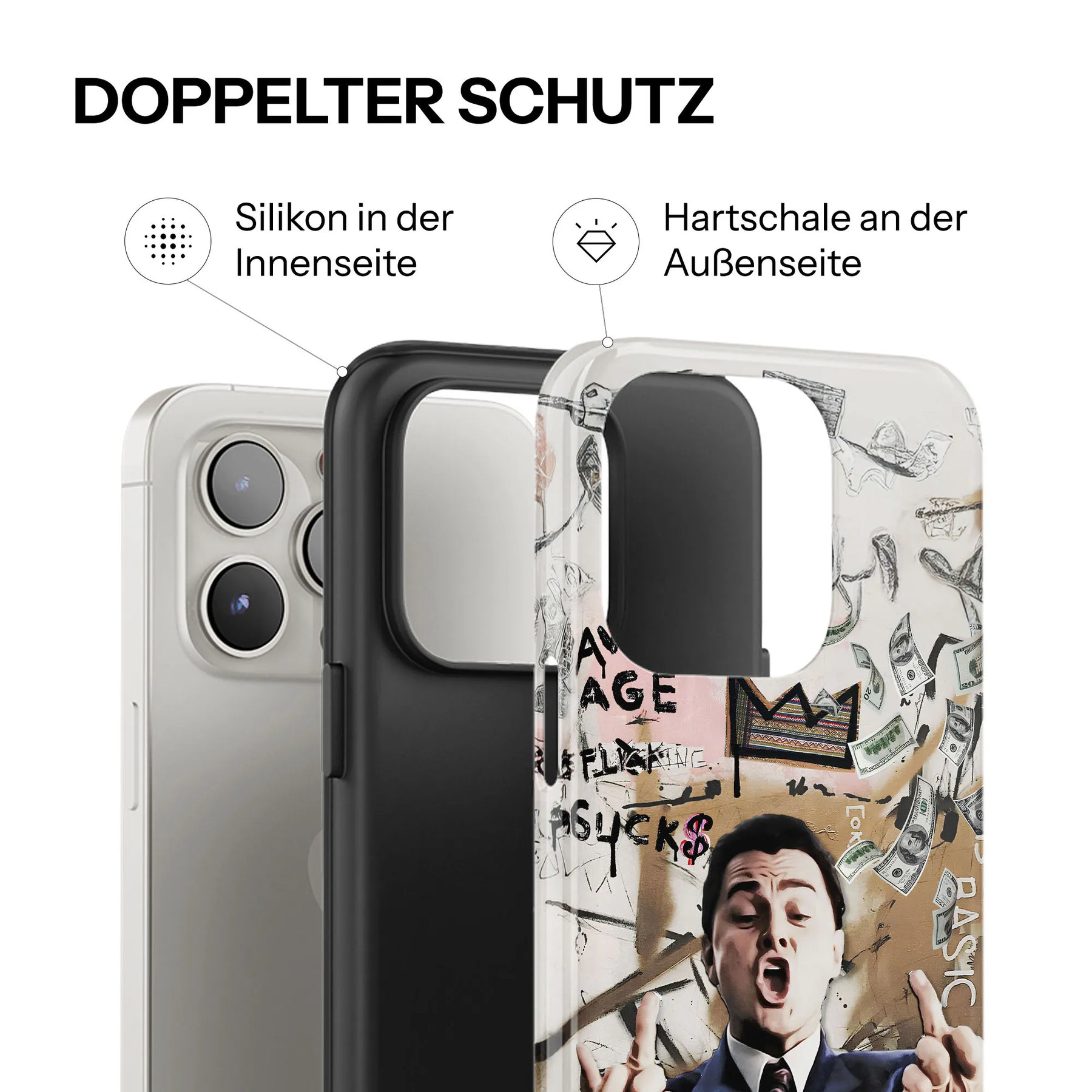 Jedes Case kombiniert eine präzise gefertigte Silikonform im Inneren mit einer glänzenden Hartschale außen. Das Ergebnis: Ein Case, das sich perfekt an dein Smartphone anschmiegt, es zuverlässig schützt und dabei mit einem stilvollen Design überzeugt.